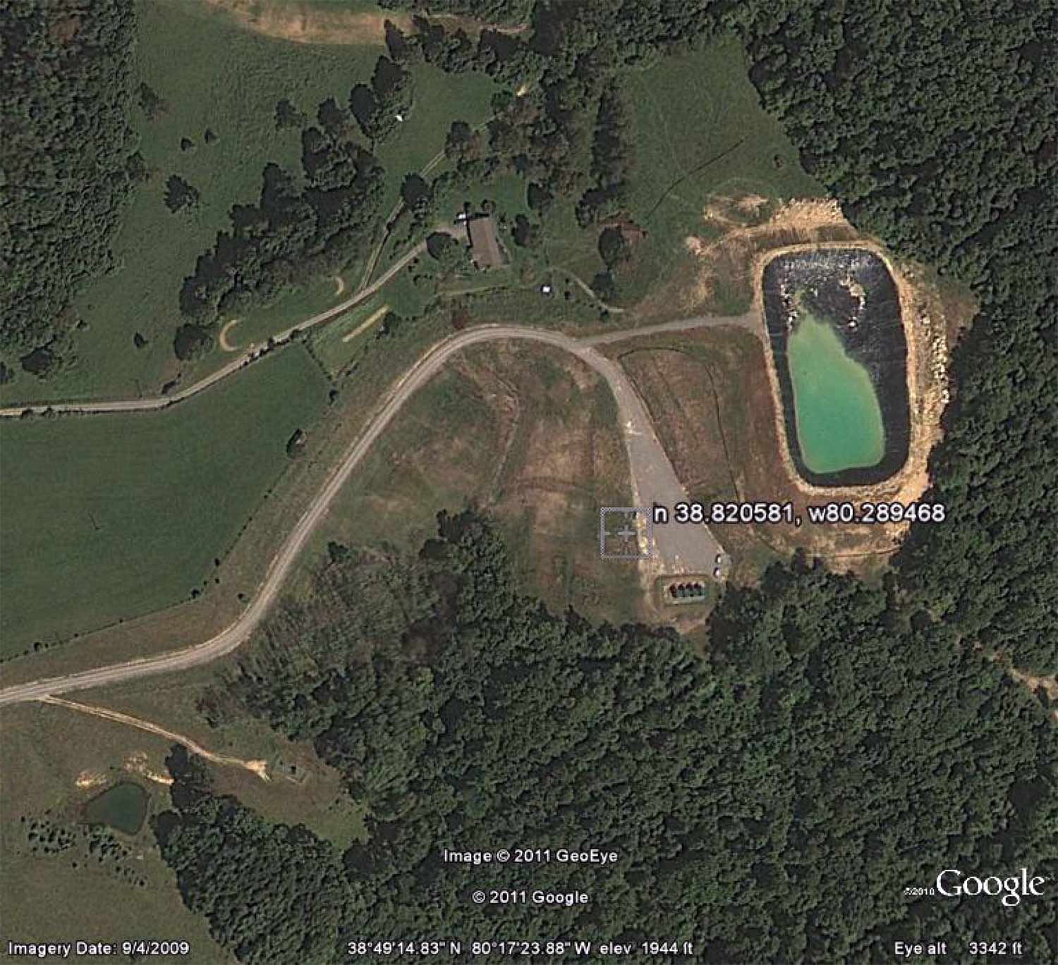 - Google Earth image, 2009-09-04 During drillilng, showing additional pit.